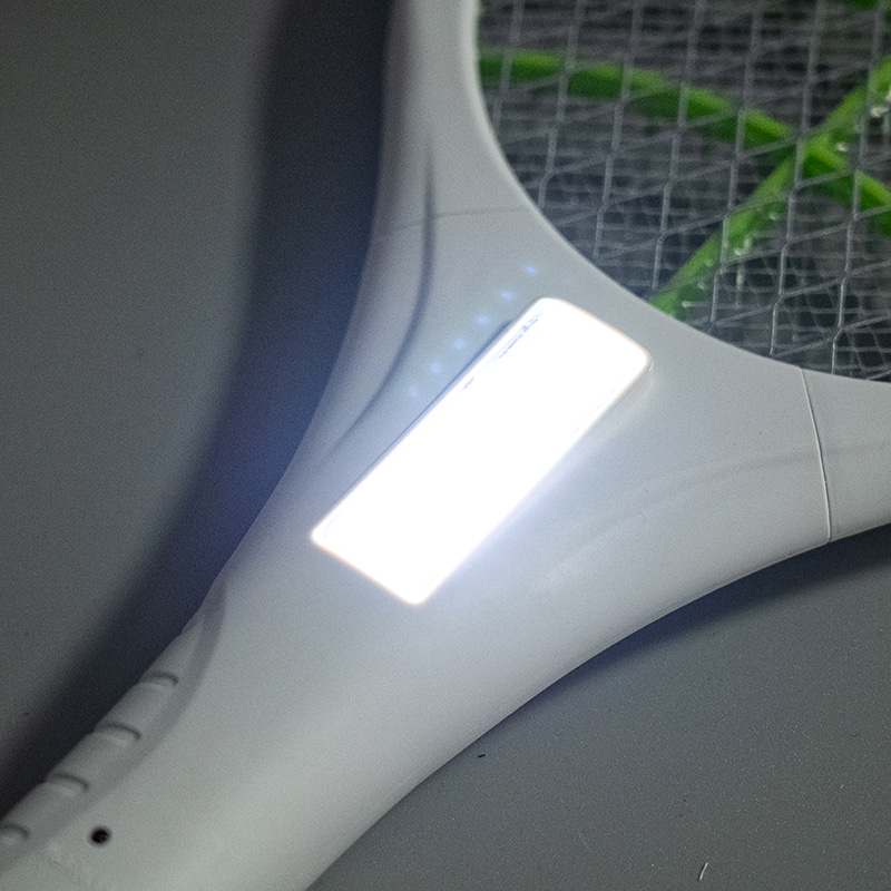 This product is equipped with a 400mAh valve-regulated sealed lead-acid battery. Lead-acid batteries have excellent high-current discharge characteristics, capable of instantly outputting the instantaneous current required for high-voltage electric shock, ensuring the mesh voltage remains stable at 2200-3000V for instant mosquito killing. It has strong charging acceptance, compatible with direct-plug charging modules, and boasts a charging efficiency of over 85%, avoiding energy loss during charging. The LED module is integrated into the front of the mosquito swatter handle, employing a focusing lens design with an illumination angle of approximately 120°. The concentrated light is glare-free, meeting the needs for mosquito location during nighttime mosquito killing and also serving as an emergency flashlight with a beam distance of 3-5 meters, covering the lighting needs of bedrooms, living rooms, and other indoor spaces.
