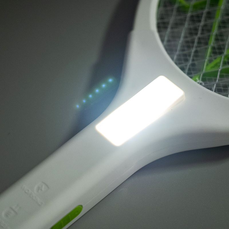 This mosquito swatter features a built-in 400mAh lead-acid battery with a stable nominal voltage of around 3.6V, supporting continuous operation for extended periods while maintaining stable voltage output. This ensures the electric shock mesh continuously releases high-voltage current, instantly stunning mosquitoes. The product's electric shock voltage is typically between 4000 and 6000 volts, quickly eliminating mosquitoes while ensuring human safety. For charging, it supports both fast charging via a standard plug and solar panel charging, allowing for normal use outdoors in environments without electricity. The LED lighting uses high-brightness, energy-saving bulbs with a power consumption of approximately 0.5 to 1 watt, providing sufficient illumination without excessively consuming battery power.
