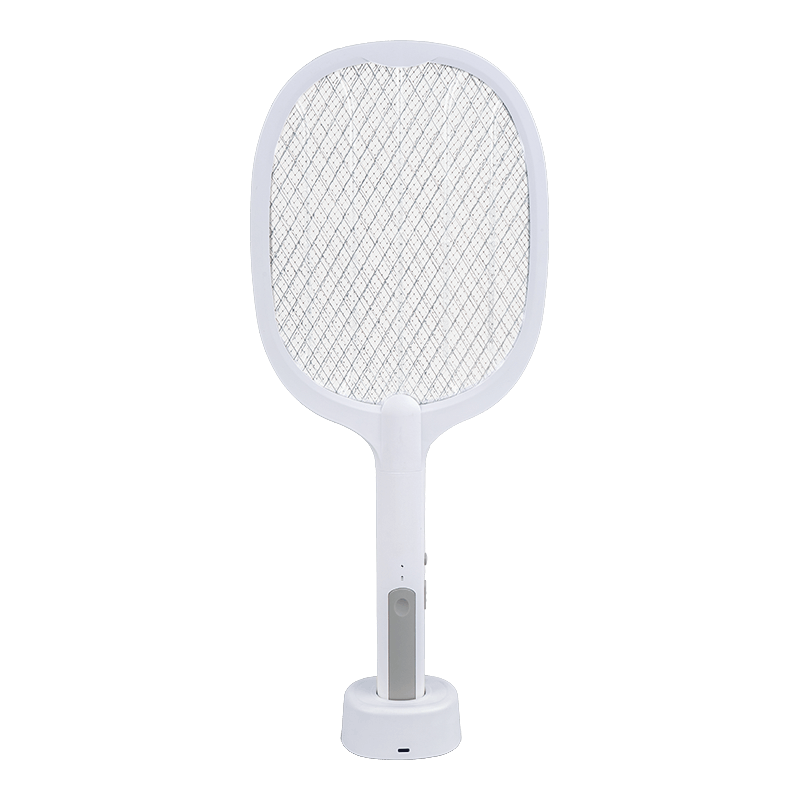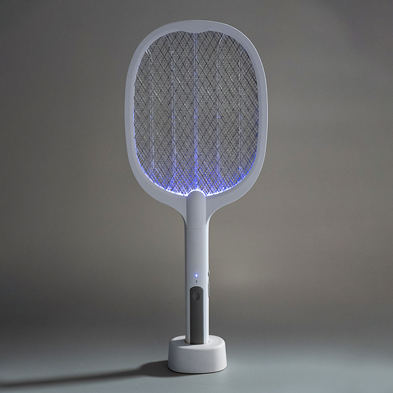 This is a modern household electric mosquito swatter that integrates high-capacity lithium battery power, exquisite design, auxiliary lighting, and a base-style structure. Equipped with a built-in lighting system, the light provides auxiliary illumination in low-light environments, making mosquito locations clearer and increasing the success rate of mosquito swatting. The light uses a low-power LED light source, effectively controlling energy consumption while ensuring stable brightness, avoiding significant impact on battery life. The layout of the light and the swatter surface is rationally designed to prevent glare or obstruction of vision during use, allowing the lighting function and mosquito-swatting operation to work synergistically, making it particularly suitable for use in bedrooms at night or in dark environments.