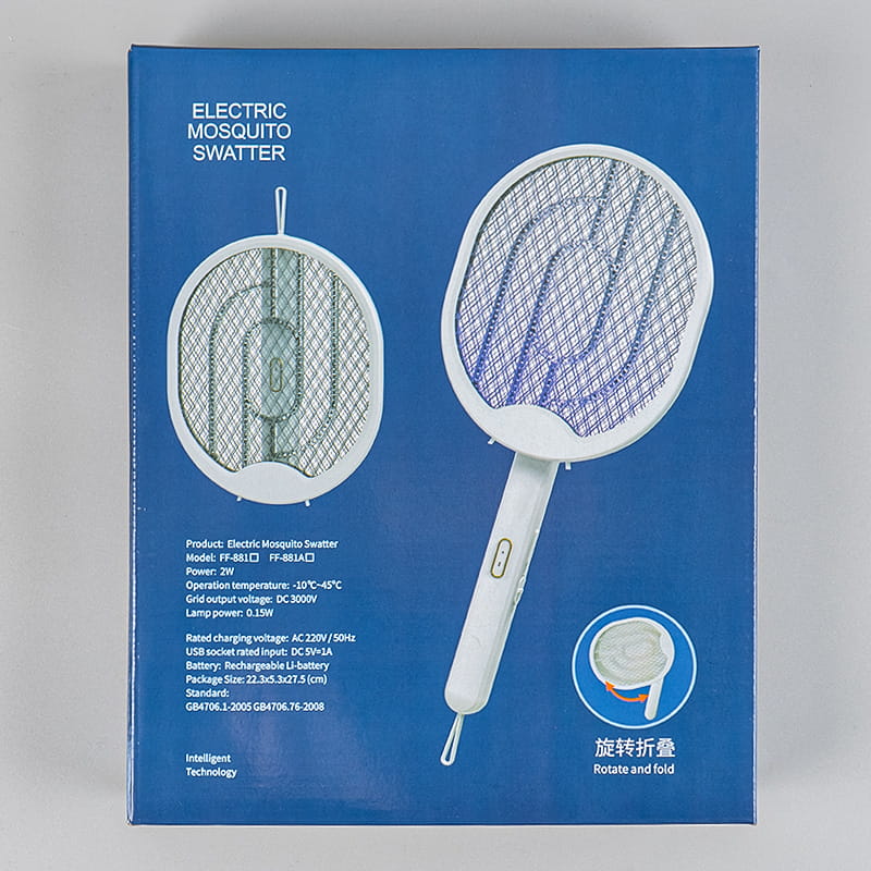 FF-881 Foldable USB rechargeable electric mosquito swatter with display screen